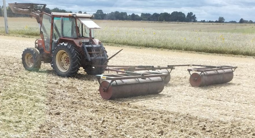 Je suis équipé de 3 rouleaux trainés de la marque Sirot pour une largeur totale de travail de 9 mètres, l'inconvéniant de ces anciens modèles est principalement le transport. Je souhaiterais pouvoir les modifiers afin de replier l'ensemble de manière simple, cela peut etre manuel ou hydraulique sur un seul chassis équipé de roue ne dépassant pas 3 mètres de largeur. Chaque rouleau est composé de 3 éléments de tôle roulée d'un mètre de largeur formant une bille de 600mm de diamètre fixé sur un chassis en tube carré de 100mmx100mm.