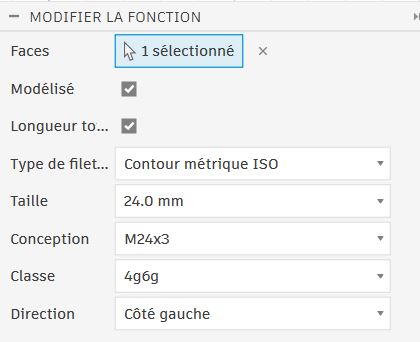 Je n'ai pas réussi à modéliser partiellement le filetage. j'ai rajouté la photo de la pièce d'origine