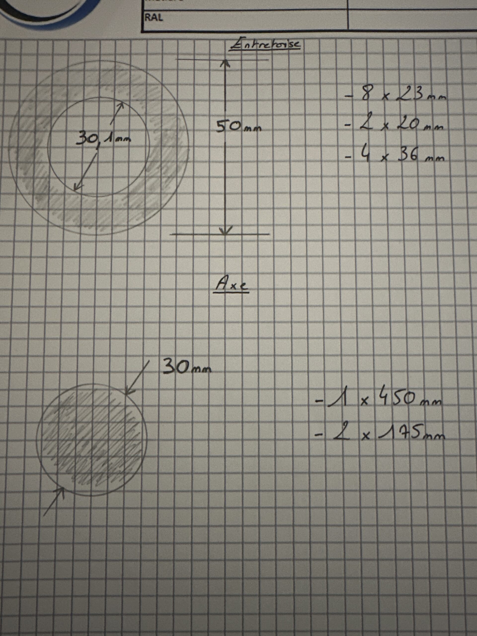 Axe et entretoise