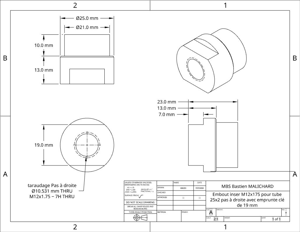 Insert fileté à souder